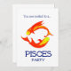 Une invitation de partie pour un Piscean avec deux poissons oranges brillants, d'une peinture pour aquarelle par Judy Adamson. Le texte avant, dans bleu-foncé, est, "vous êtes invités à une partie de POISSONS" et le dos est laissé vide pour que vous ajoutiez les détails de la partie.