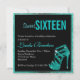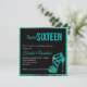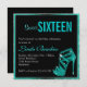 invitation Sweet sixteen avec talon de verre haut en imitation aqua sur un arrière - plan noir avec cadre d'aqua à la fois amusant et élégant. Personnalisez ce invitation avec votre nom et surprenez vos amis et votre famille avec cette unique d'un invitation gentil. Laissez votre fête être un succès à partir des invitations. Vous trouverez également des autocollants à talon élevé, des timbres étiquettes dans notre magasin.