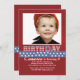 Une invitation délicieuse avec un thème patriotique. L'arrière - plan rouge audacieux a un bleu, étoile-a orné la bande et les mots de paillettes de "JOUR de NAISSANCE" de coutume. Ajoutez juste votre photo préférée pour lui faire le vôtre ! (Point de gel)
