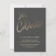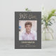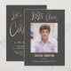 Cet élégant et festif 4,5" x 6,25" Photo Graduation Party Invitation et Faire-part présente les mots "2025 Grad" dans une police moderne, dorée (feuille simulée). Il y a une zone photo personnalisée pour votre photo du diplômé. L'arrière - plan est gris foncé, mais peut être changé à n'importe quelle couleur de votre choix (noir, couleur de l'école principale, etc.). Les détails de la célébration sont au verso avec le texte or "Fêtons" correspondant. Les détails de la fête peuvent être facilement customisés pour votre événement spécial. Une façon simple et belle pour les invités invitations de célébrer un diplôme.