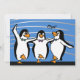 Trois pingouins délicieux dansent le syrtaki. Une danse grecque de bonheur et de célébration. Opa !