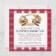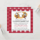 Invitez vos amis et famille à un BBQ extérieur cet été avec cette invitation mignonne. Cette invitation de pique-nique d'amusement comporte le casquette et les weiners d'un chef sur le graphique d'outils de cuisine aussi bien qu'un arrière - plan de guingan rouge de pays ou de cadre modelé par plaid et d'arrière. Plusieurs gisements customizeable des textes vous permettent de la personnaliser pour adapter à n'importe quelle occasion - grande pour des fêtes d'anniversaire, des réunions, et tous les barbecues d'occasion.