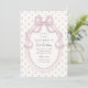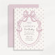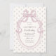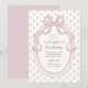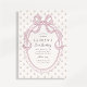 Invitation élégante pour le premier anniversaire avec un motif floral délicat et un cadre de nœud rose de style héritage. Le design ovale à festons et les détails botaniques intemporels créent un look cottagecore raffiné, parfait pour les fêtes de premier anniversaire classiques et les célébrations inspirées de l'ancien. Un choix charmant pour une invitation de premier anniversaire avec nœud floral avec une ambiance douce et traditionnelle.