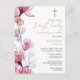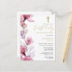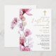 Cette élégante carte postale d'invitation de première communion florale transparente rose poudré peut être personnalisée avec vos informations en typographie chic avec votre monogramme au verso. Conçue par Thisisnotme©