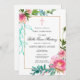 Aquarelle rose vif pivoine avec feuillage ouvert bleu turquoise. Moderne et élégant.