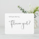 Ce script minimaliste Flower Girl Proposition carte est la façon parfaite de célébrer votre douche nuptiale dans le style. Caractéristiques de typographie élégante et moderne. Vous pouvez personnaliser cette conception en cliquant sur "Personnaliser ce modèle" ou si vous souhaitez modifier la police, les couleurs arrière - plans ou organiser les éléments de conception d'une manière différente, vous pouvez cliquer sur "Modifier à l'aide de l'outil de conception".