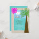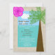 Vous êtes-vous mariés dans un cadre tropical et souhaitez-vous célébrer avec une réception après mariage sur le thème tropical ou plage ? Cette invitation de réception après mariage est peut-être l'invitation idéale pour vous. Avec un hibiscus en haut à droite dans un rose vif, le design est bordé de ce qui ressemble à du sable avec un palmier à droite. Le nom de la mariée et du marié apparaît dans le ciel et les détails de la réception après mariage apparaissent dans l'océan. Une excellente façon d'inviter vos invités à une réception après mariage après un mariage à destination. Copyright henishouseofpaper