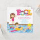Mettez sur pied votre réception au bord de la piscine outre de la droite avec notre invitation mignonne superbe de fête d'anniversaire de fille de réception au bord de la piscine de bain nos caractéristiques uniques d'invitation de partie de plage de piscine d'été une fille mignonne de brune porter un support de maillot de bain de roses indien sur le bord d'une piscine avec une fille et un garçon flottant dans des flotteurs dans la piscine. Soutenez des coordonnées d'invitation avec l'avant et avez des nouilles de bain et un ballon de plage. En outre disponible dans une fille blonde et pour des garçons dans notre magasin. Invitation parfaite de réception au bord de la piscine pour un ado et une partie de natation de tween. Personnalisez juste avec votre information et vous êtes tous placez pour aller ! Articles assortis comprenant des timbres-poste d'anniversaire, autocollants de faveur, merci vous carde et remercie que les autocollants sont également disponibles dans notre magasin. illustrations de ©JW de www.celebrateitinvites.com