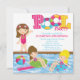 Mettez sur pied votre réception au bord de la piscine outre de la droite avec notre invitation mignonne superbe de fête d'anniversaire de fille de réception au bord de la piscine de bain nos caractéristiques uniques d'invitation de partie de plage de piscine d'été une fille mignonne de brune porter un support de maillot de bain de roses indien sur le bord d'une piscine avec 2 filles flottant dans des flotteurs dans la piscine. Soutenez des coordonnées d'invitation avec l'avant et avez des nouilles de bain et un ballon de plage. En outre disponible dans une fille blonde et pour des garçons dans notre magasin. Invitation parfaite de réception au bord de la piscine pour un ado et une partie de natation de tween. Personnalisez juste avec votre information et vous êtes tous placez pour aller ! Articles assortis comprenant des timbres-poste d'anniversaire, autocollants de faveur, merci vous carde et remercie que les autocollants sont également disponibles dans notre magasin. illustrations de ©JW de www.celebrateitinvites.com