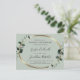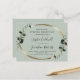 Faire-part de réception de mariage du soir ovale doré Eucalyptus Sage... Notre invitation de réception du soir unique en format carte postale "recto-verso" présente des feuilles d'eucalyptus vert émeraude sur une bordure ovale dorée fausse entourant le texte d'information de votre réception sur un fond vert sauge délicat. La calligraphie chic associée à des textes serif noirs et italiques expressifs créent un look classique et élégant pour votre invitation de réception. Le verso de l'invitation contient le code QR de votre site web de mariage ainsi que l'URL du site web écrit en texte afin que vos invités puissent répondre facilement en ligne et également consulter les détails dont ils ont besoin, y compris les options de repas, les hébergements disponibles et les sites de liste de mariage. Tout le texte d'exemple peut être facilement remplacé par vos propres informations sur le modèle de personnalisation. Les enveloppes pour cette invitation de taille carte postale sont disponibles à l
