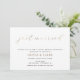 L'annonce de mariage des jeunes mariés fait également office d'invitation à la réception de mariage. L'invitation de réception recto-verso présente "Juste mariés" en lettrage de feuille d'or faux avec le texte annonçant le mariage des jeunes mariés et invitant les invités à une réception de mariage décontractée. Personnalisez avec votre photo horizontale au verso.