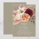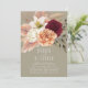 Cette invitation de réception de mariage rustique présente des fleurs peintes à la main en burgundy, ivoire, pêche et rose saumon avec des accents d'herbe de pampa sur un fond taupe doux. Parfait pour une célébration décontractée mais élégante après votre cérémonie, ce design convient aux mariages d'été ou de début d'automne avec un thème romantique boho ou campagnard.
