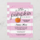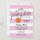 Invitation rayé bleu et blanc de baby shower de citrouille. Perfectionnez pour un bébé. CHANGEZ LE TEXTE POUR ADAPTER à VOTRE copie de PARTIE et de dos incluse.