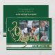 Annonce de graduation de la promotion 2025 avec trois photos et rayure varsity or dans les tons vert et or.