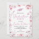 Célébrez son succès avec cette invitation de remise des diplômes "Pink Cosmos & Bee". Avec des fleurs sauvages aquarelles roses délicates et des illustrations de abeilles charmantes pour un effet naturel. Ce design botanique fantaisiste avec une toque de graduation rose est parfait pour une fête de jardin de printemps pour la promotion 2026. Idéal pour les diplômés qui aiment les abeilles, la nature et la papeterie florale élégante.