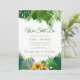 Cette carte d'invitation de renouvellement de vœux de couronne de soleil d'été est parfaite pour une cérémonie et une célébration de renouvellement de vœux de printemps ou d'été. Le design présente une couronne de verdure florale avec des tournesols jaunes brillants et des fleurs de gerbera roses.