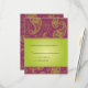 Des motifs paisley verts surimpriment un riche fond violet. Le texte de mariage personnalisé est placé sur un panneau dégradé vert citron. Idéal pour un mariage sur le thème de l'Asie du Sud-Est ou lorsque vous souhaitez faire une déclaration chaleureuse et audacieuse. Disponible en couleurs alternatives avec des produits assortis.