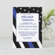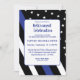 Invitation de retraite de police avec drapeau de ligne bleue pour célébrer la retraite de votre collègue. Ajoutez sa photo au verso en utilisant le modèle facile.