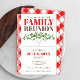 Cette joyeuse invitation à la réunion de famille d'arbre de famille est ornée d'un arrière - plan rouge à damiers nappe. Parfait pour votre sortie en famille, pique-nique ou fête d'été. Un design unique de haute qualité. Victoria est un concepteur d'invitation professionnel situé à Jupiter, FL près de West Palm Beach.