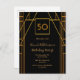 Elégant faux or et glam pour une fête d'anniversaire de 50e (ou tout âge)! Une invitation à la fête d'anniversaire de style art déco en faux or et noir pour une fête glamour. Modèles de 50 ans, nom et pour vos informations de fête.