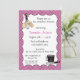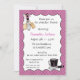 Une invitation pour un wedding shower avec un thème de cuisine avec des ustensiles onduleux roses et noirs de frontière et de cuisine de point de polka. Les invitations viennent avec des enveloppes et votre choix de papier.