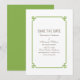 Annonce de sauvegarde simple et minimaliste de Deco Chic avec une bordure moderne de décoration art déco verte. Cette invitation de sauvegarde classique et élégante est facile à personnaliser avec vos détails de mariage. Trouvez plus d'options de personnalisation en cliquant sur Personnaliser.