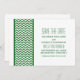 Annonce de sauvegarde de date de mariage moderne et chic avec une bordure à motif chevron simple en vert foncé et blanc. Ce design élégant donnera le ton pour un mariage élégant. Facile à personnaliser, il suffit d'ajouter vos détails de mariage dans les champs de texte fournis. Cliquez sur "Personnaliser" pour trouver plus d'options de personnalisation.