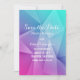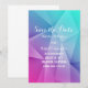 Annonce de sauvegarde de date de mariage de tons de bijou tranchants et modernes avec un fond de triangle géométrique funky multicolore (bleu, violet, rose et turquoise). Cette conception chic et simple est un choix unique pour annoncer un mariage moderne. Facile à personnaliser avec vos détails de mariage. Cliquez sur "Personnaliser" pour trouver plus d'options de personnalisation.