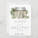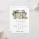 C'est une simple invitation de sauvegarde de date sur un fond blanc uni avec une peinture de manoir en haut. Il contient le lieu, le nom du couple et la date.