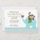 Adorable invitation singe et éléphant bleu pour votre prochain baby shower ou fête d'anniversaire. Des articles correspondants sont disponibles !