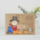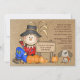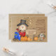 Une adorable invitation sur le thème de l'automne avec un épouvantail souriant assis à côté d'un panneau avec votre libellé. Il y a des citrouilles éparpillés et un mignon chiot. Une invitation parfaite pour toute célébration d'automne.