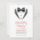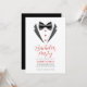 Silhouette de smoking noir avec boutons rouges, une invitation élégante pour une soirée de célibataire.