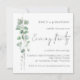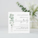 Invitation de soirée Mariage Eucalyptus moderne. Un ensemble de style manuscrit pour Soirée et le reste du texte que vous pouvez facilement personnaliser. Une élégante branche de feuilles d'eucalyptus à aquarelle descend sur le côté gauche.