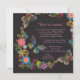 Une invitation basée sur noir avec une splendeur des fleurs et des papillons dans des couleurs brillantes. Comporté ici comme invitation nuptiale de douche, elle est parfaite pour n'importe quelle célébration féminine.