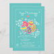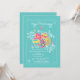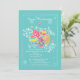 Une belle invitation turquoise avec les oeufs de pâques admirablement colorés et les fleurs de fantaisie et feuillage encadré avec un cadre pointillé.