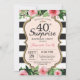 Invitation surprise 40e anniversaire pour les femmes. Invitation de la fête d'anniversaire Black and Gold. Parties scintillant d'or. Fleur florale d'aquarelle rose. Grandes taches noires et blanches. Numérique imprimable. Pour plus de personnalisation, cliquez sur le bouton "Customiser" et utilisez notre outil de conception pour modifier ce modèle.S