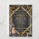 Invitation de Sweet 16 Art Déco des années 1920 noire et or. Découvrez nos cartes de réponse et de réception assorties.