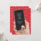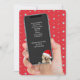Joli récupérateur d'or avec chapeau de Père Noël sur l'écran de téléphone portable avec l'invitation de texte de fête de Noël. Rouge avec étoiles blanches arrière - plan motif.