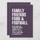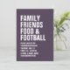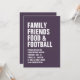 Avec une typographie blanche audacieuse, cette invitation de dîner de Thanksgiving de couleur prune festive est facilement personnalisable et donne le ton pour un jour de fête de Thanksgiving amusant et décontracté. Le texte indique "famille amis nourriture & football" mais il peut être modifié pour dire ce que vous voulez et la couleur est également personnalisable ! Idéal pour la fête des amis ! Trouvez des accessoires de Thanksgiving assortis dans la collection Thanksgiving moderne audacieuse de Lea Delaveris Design.