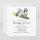 Une carte d'invitation pour le dîner de Thanksgiving amusante et douce où la Turquie s'est échappée de Thanksgiving et voyage dans l'univers avec l'aide de sa fusée.