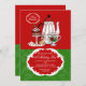 Une invitation avec du charme juste parfaite pour célébrer la saison avec un thé. Perfectionnez pour une douche nuptiale de vacances aussi ! La carte comporte un pot de thé, la tasse de thé et un plateau des festins contre un contexte rouge avec un fond vert floral.