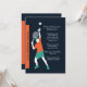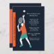 Une invitation de sport-thème pour l'anniversaire d'un enthousiaste de tennis. La carte comporte un joueur de tennis masculin environ pour servir la boule. L'orange audacieuse, la sarcelle d'hiver et les couleurs blanches sautent sur le fond noir.