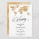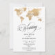Planifiez votre mariage dans une destination romantique ? Invitez vos invités avec cette belle invitation avec une carte du monde en or et votre destination personnalisée marquée avec le cœur amovible et une typographie de luxe