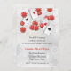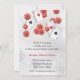 Invitation de vacances amusante sur le thème du casino. Le design propose quatre as, des dés et des jetons de poker sur un arrière - plan de flocon gris et blanc.