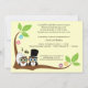 Les caractéristiques de conception ce de contemporain une jeune mariée de hibou portant un voile court avec des perles et une robe de mariage et un hibou toilettent complet avec le casquette supérieur, la cravate d'arc et les queues. Le couple se repose sur une branche d'arbre et est encadré par les fleurs et le feuille colorés. Tout les texte à cette invitation nuptiale lunatique de douche est complètement personnalisable pour votre information de partie.