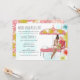 Invitation à une fête d'enterrement de vie de jeune fille pour un week-end de détente à la plage avec la mariée dans un cadre tropical. La future mariée est disponible en blonde, brune et rousse et en peau foncée ou claire.