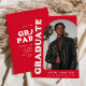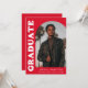 Invitation de remise de diplômes élégante et tendance avec la photo du diplômé sur le devant avec un cadre photo en arc décalé. "Graduate" est affiché en gras blanc rétro lettrage sur un arrière - plan rouge. Personnalisez l'avant de l'invitation de la fête de remise de diplômes en photographie en ajoutant le nom du diplômé, l'école et l'année de remise de diplômes. L'invitation inverse pour afficher les détails de votre fête de remise de diplômes. L'invitation rouge de la fête de remise de diplômes est parfaite pour les diplômés du secondaire et du collège.
