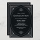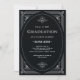 Ces élégantes invitations à la remise des diplômes ont une touche moderne sur l'art déco classique. Un cadre géométrique blanc et ornemental orné orne un élégant arrière - plan noir onyx pour un look spectaculaire et vintage pour le diplômé 2022.