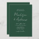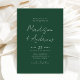 Faire-part de mariage simple avec vos noms affichés dans un script blanc manuscrit avec un arrière - plan vert lierre (ou la couleur de votre choix). Personnalisez les invitations de mariage modernes avec des détails mariages tels que votre date de mariage, l'heure, l'emplacement, les informations de réception, etc. L'invitation de mariage vert foncé a été conçue pour être coordonnée avec notre collection de mariage de script Décontracté moderne.