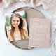Ces invitations élégantes et modernes à la grande fête de 2021 présentent une typographie décontractée et branchée de script blanc sur un arrière - plan rose pâle. Ajoutez une photo du diplômé à l'arrière.